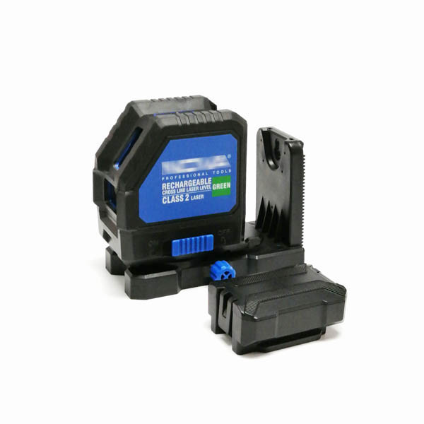 Laser level with integrated magnetic bracket, 3xAA alkaline battery, manual, carry pouch