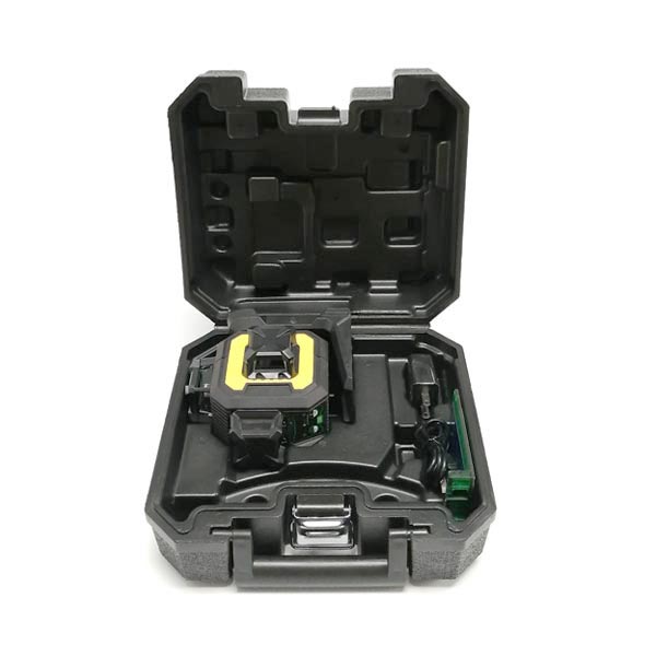 3D Laser level with integrated magnetic bracket, green target, charger, Type-C charging cable, manual, plastic carry case